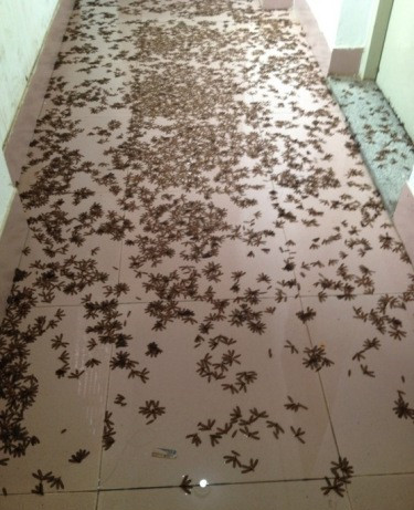 華南理工大學(xué)學(xué)生在新浪微博上感嘆,飛蟻數(shù)量居然多到讓小伙伴不慎品嘗了一只。大家紛紛用書本等拍打,有同學(xué)甚至想在宿舍養(yǎng)青蛙。