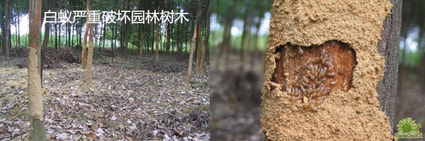 白蟻可以危害甘蔗、花生等農(nóng)作物,尤其對(duì)甘蔗的危害十分嚴(yán)重。另外,白蟻對(duì)林木、果樹等的危害也具有相當(dāng)?shù)膹V泛性和嚴(yán)重性。